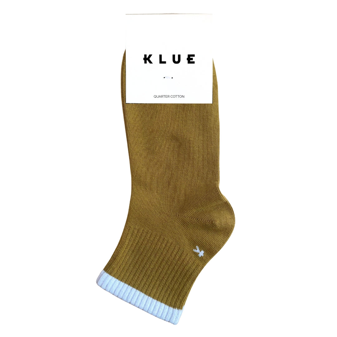 Chaussettes courtes KLUE en coton bio à rayures Quarter Tennis | Caramel