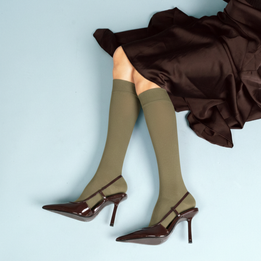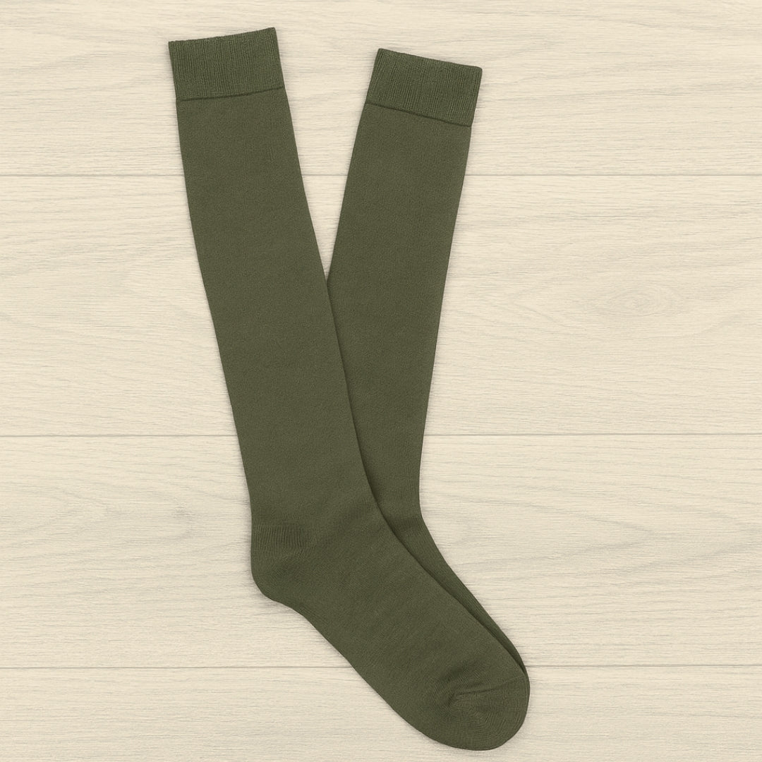 Chaussettes KLUE en coton bio unies – longueur sous le genou | Kaki